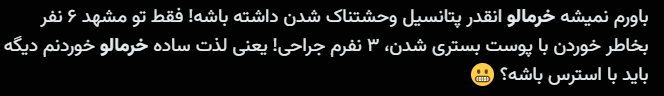 اخیراً شاهد افزایش تعداد موارد انسداد روده در ایران بر اثر مصرف خرمالو بودهایم و در شبکه اجتماعی ایکس (توییتر سابق) نیز برخی از کاربران نسبت به این موضوع هشدار دادهاند: