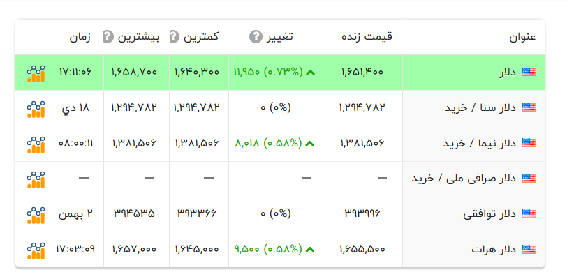 طبق اعلام سایت شبکه اطلاعرسانی طلا، سکه و ارز، قیمت دلار در بازار آزاد امروز با قیمت ۱۶۵٬۱۴۰ تومان معامله شد.
