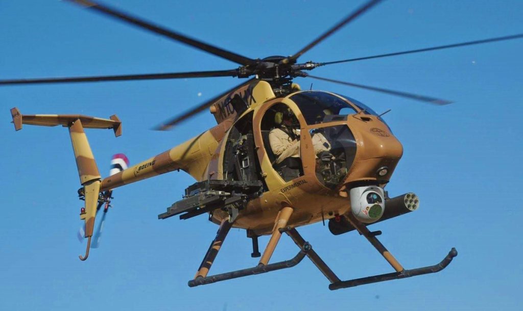 با وجود اندازه کوچک، AH-6 بدون دفاع نیست. این هلیکوپتر میتواند به مسلسل گاتلینگ چرخان یا راکت مجهز شود و حتی در نقش ضدزره هم بهکار گرفته شود. بوئینگ اعلام کرده این پلتفرم برای طیف وسیعی از مأموریتها پیکربندی شده است؛ از حملات سبک و دقیق، شناسایی، اسکورت و امنیت گرفته تا انتقال نیرو، تخلیه، و عملیات جستوجو و نجات رزمی. بهطور کلی، این هلیکوپتر میتواند تقریباً هر مأموریتی را که ارتش نیاز داشته باشد انجام دهد.