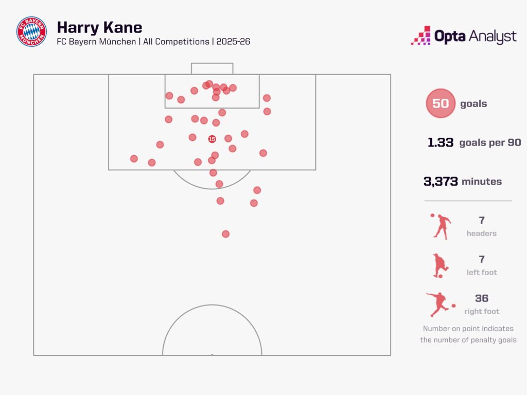 دایوت اوپامکانو پس از حرکت لوئیس دیاز، توپ را برای کین فراهم کرد و او با ضربهای دقیق به گوشه پایین دروازه گلزنی کرد. این پنجاهمین گل کین در تمام رقابتهای این فصل بود و او را به دومین بازیکن انگلیسی تبدیل کرد که در پنج بازی متوالی لیگ قهرمانان گل میزند؛ پس از استیون جرارد در فصل ۲۰۰۷/۰۸.