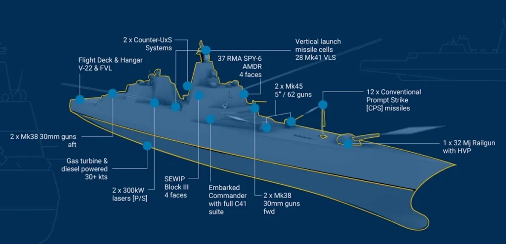 این ناوها جایگزین برنامه قبلی نیروی دریایی برای توسعه ناوشکن نسل جدید DDG(X) خواهند شد، هرچند قرار است برخی قابلیتهای آن پروژه در طراحی جدید لحاظ شود.