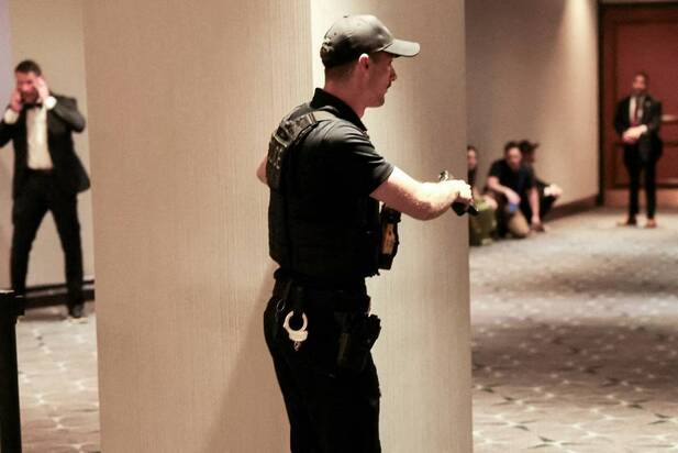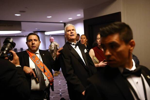 در پی حادثه تیراندازی در مراسم شام کاخ سفید در هتل هیلتون، تصاویر تازهای از لحظات پرتنش پس از این اتفاق و فضای امنیتی اطراف محل منتشر شده است.